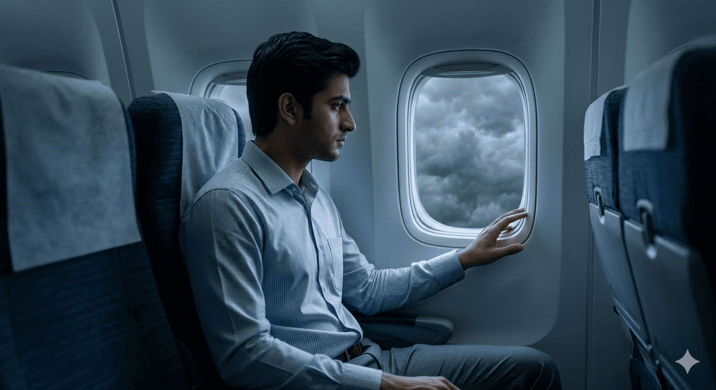 Di dalam pesawat yang perlahan menjauh dari landasan Mumbai, Sanju duduk diam di dekat jendela. Sabuk pengaman masih terpasang di tubuhnya, namun pikirannya terasa jauh melayang. Kota yang selama ini menjadi rumahnya perlahan mengecil di balik kaca jendela. Gedung gedung tinggi berubah menjadi titik kecil, lalu menghilang di balik awan putih.
