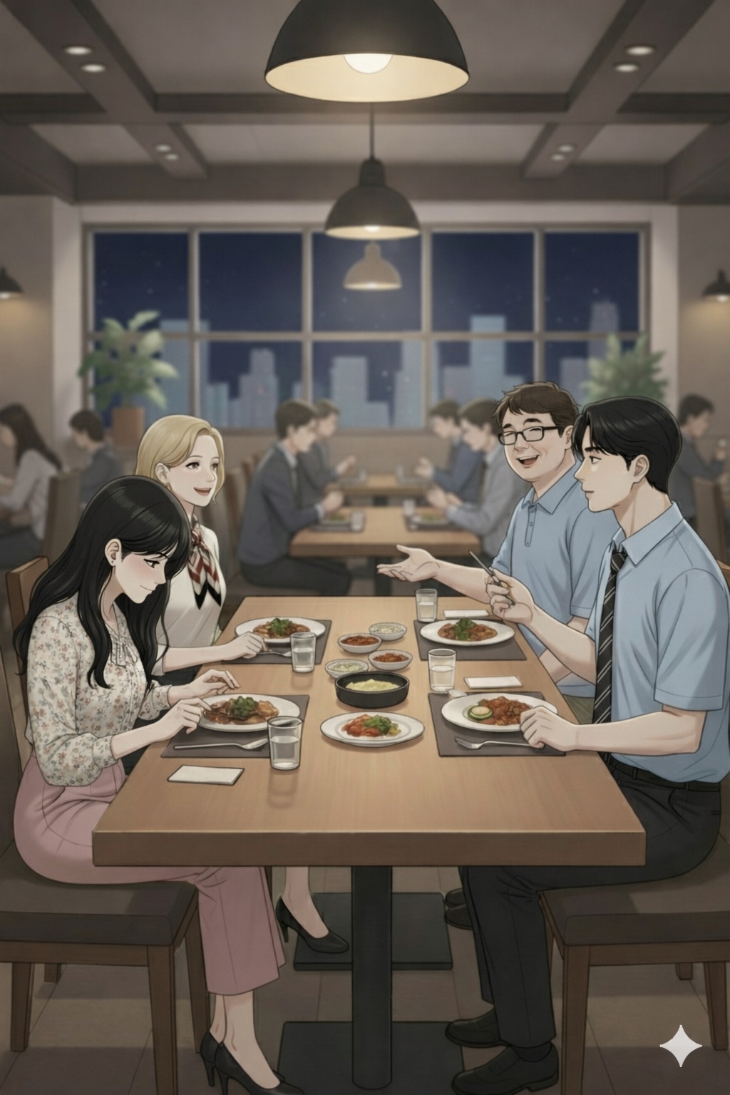 Lampu-lampu restoran temaram, meja panjang sudah dipenuhi rekan dari berbagai divisi. Beberapa wajah kukenal akrab, beberapa hanya sekadar tahu nama. Aku berusaha datang sedikit terlambat, berharap bisa duduk di ujung, dekat orang-orang yang nyaman.