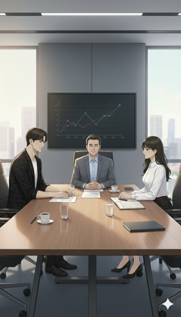 Aku duduk di kursi yang sama seperti biasanya, membuka buku catatan, menyiapkan pulpen, berusaha menempatkan diri sepenuhnya pada pekerjaan. Ruang rapat dipenuhi aroma kopi dan kertas, suara kursi yang digeser, dan gumam ringan sebelum rapat dimulai.