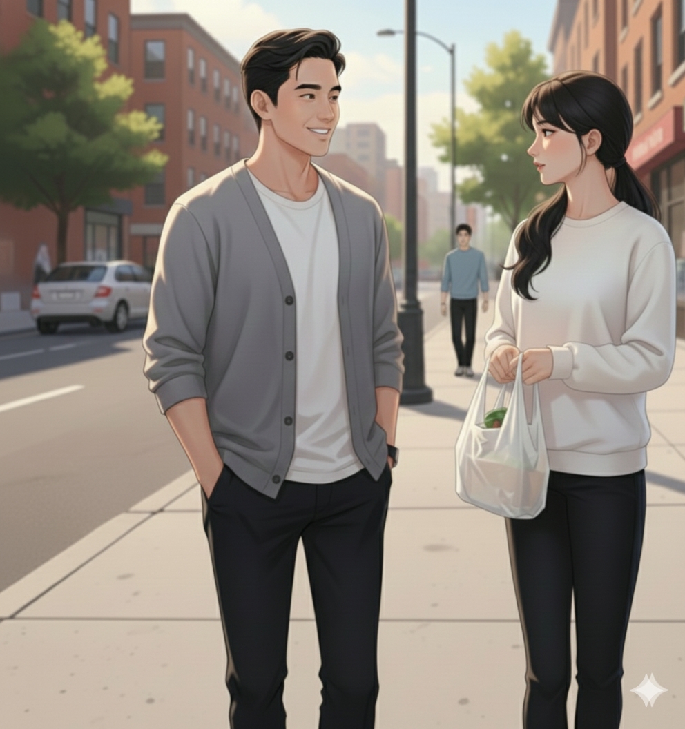 Sore itu, matahari Minggu terasa hangat di kulitku saat aku melangkah keluar dari minimarket. Kantong belanjaan kecil menggantung di tangan, isinya sederhana—teh, biskuit, dan beberapa hal yang tidak penting. Aku hanya ingin pulang. Membuat minuman hangat. Beristirahat. Menyimpan diri dari dunia.