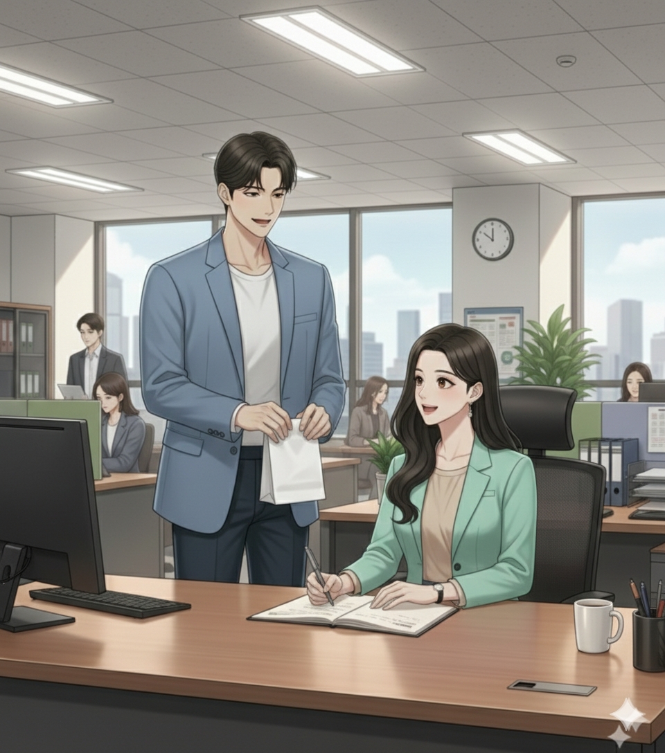 Udara kantor masih bersih dari riuh—hanya dengung AC, bunyi sepatu beberapa orang yang melintas, dan cahaya matahari yang belum sepenuhnya menghangat. Aku menarik napas panjang sebelum melangkah ke meja, merapikan tas, lalu menatap bayanganku di layar monitor yang masih mati.