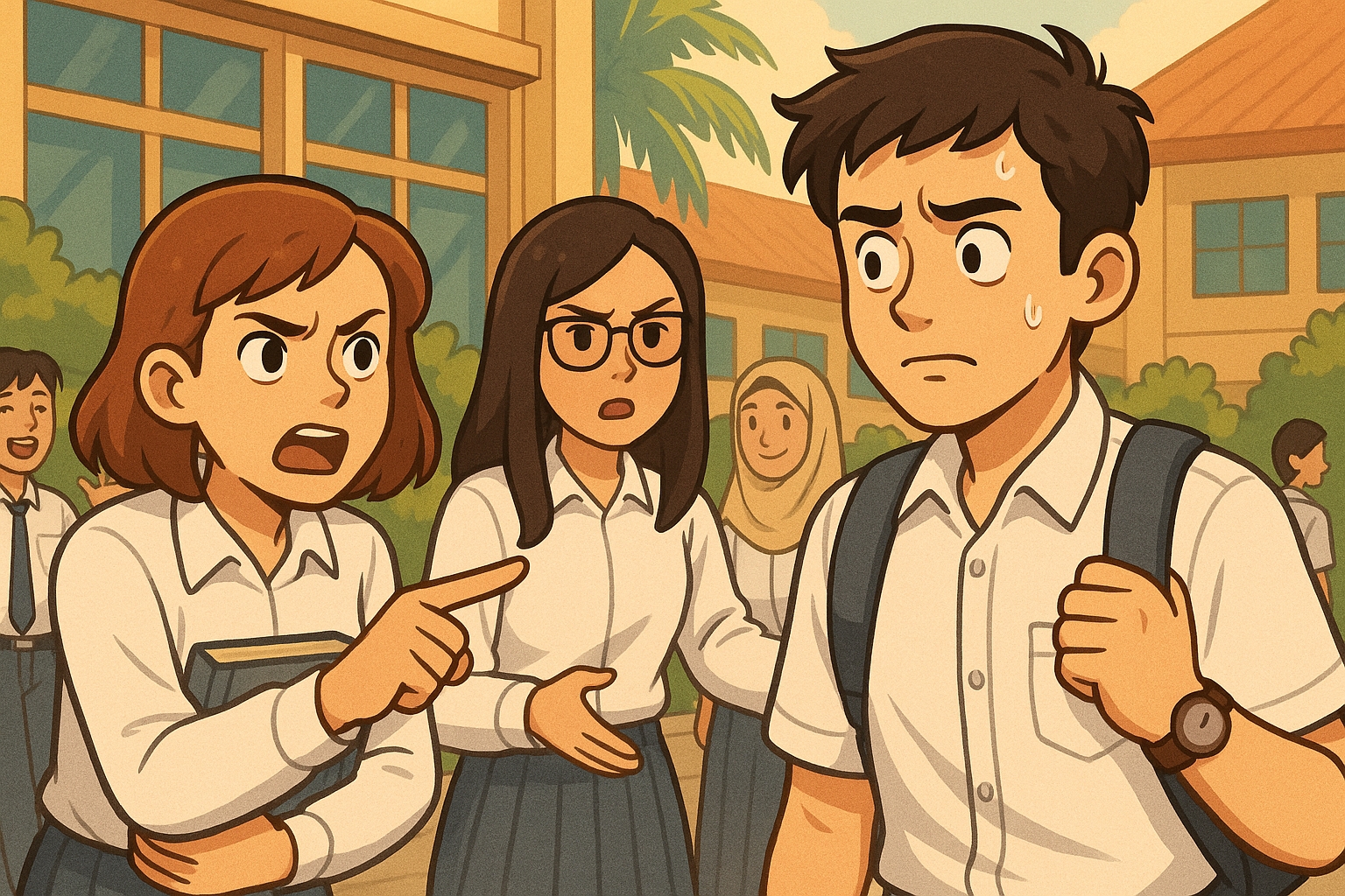 Aku geleng-geleng kepala. Di antara kami bertiga, sepertinya cuma aku yang mengerti situasinya. Aku tahu persis siapa yang meletakkan cingur itu di stang sepeda motor Aram, dan aku tahu maksudnya tidak baik. Siapa lagi kalau bukan Nadia dan Okta.