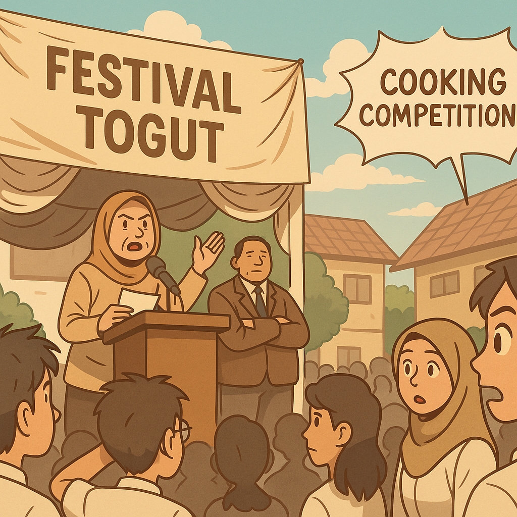 “Kurang nyambung itu dengan Festival Togut. Kurasa lomba yang masuk akal adalah lomba makan bubur banyak-banyak.”