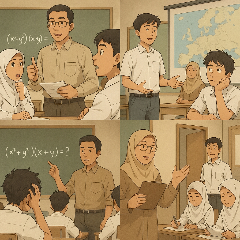 Tiga-tiga membikin otak pusing kawan. Tambahkan lagi, peraturan sekolah mewajibkan kami mengambil setidaknya 10 Uji Test. Sepuluh kali ujian lisan misalnya, bayangkan betapa ngerinya itu, kawan.