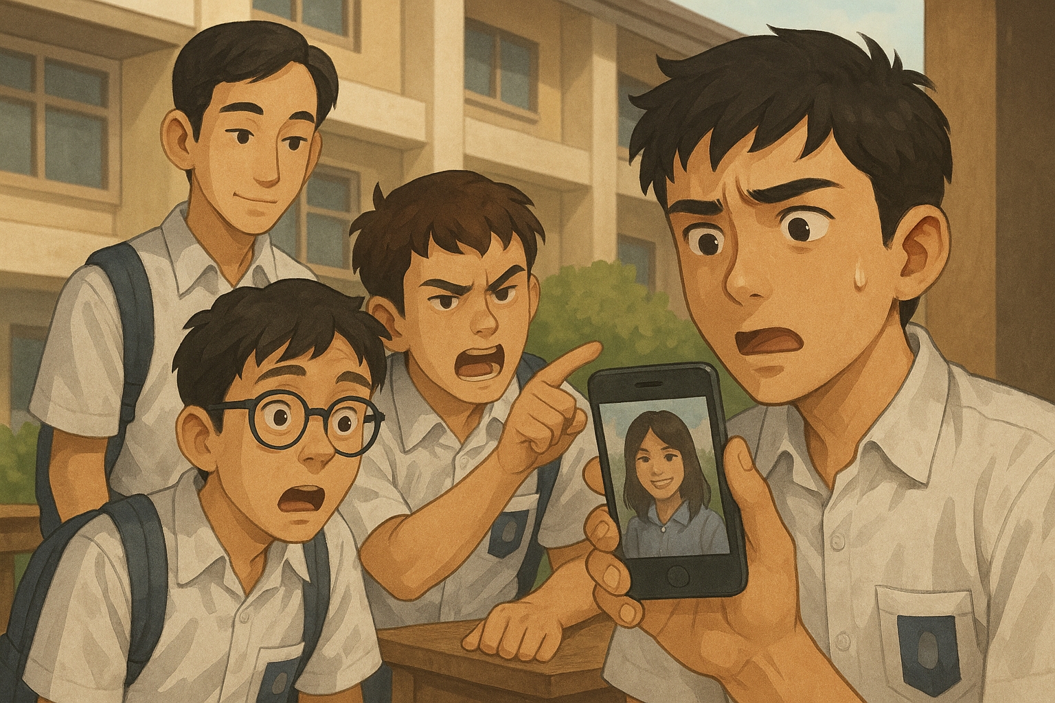 Alamak, gara-gara sebaris kalimat itu aku jadi stress. Aku jadi pendiam. Lebih banyak berdiam diri. Kalau istirahat selalu menolak ke kantin. Hidupku jadi seperti dalam peribahasa, hidup segan mati takut siksa api neraka.