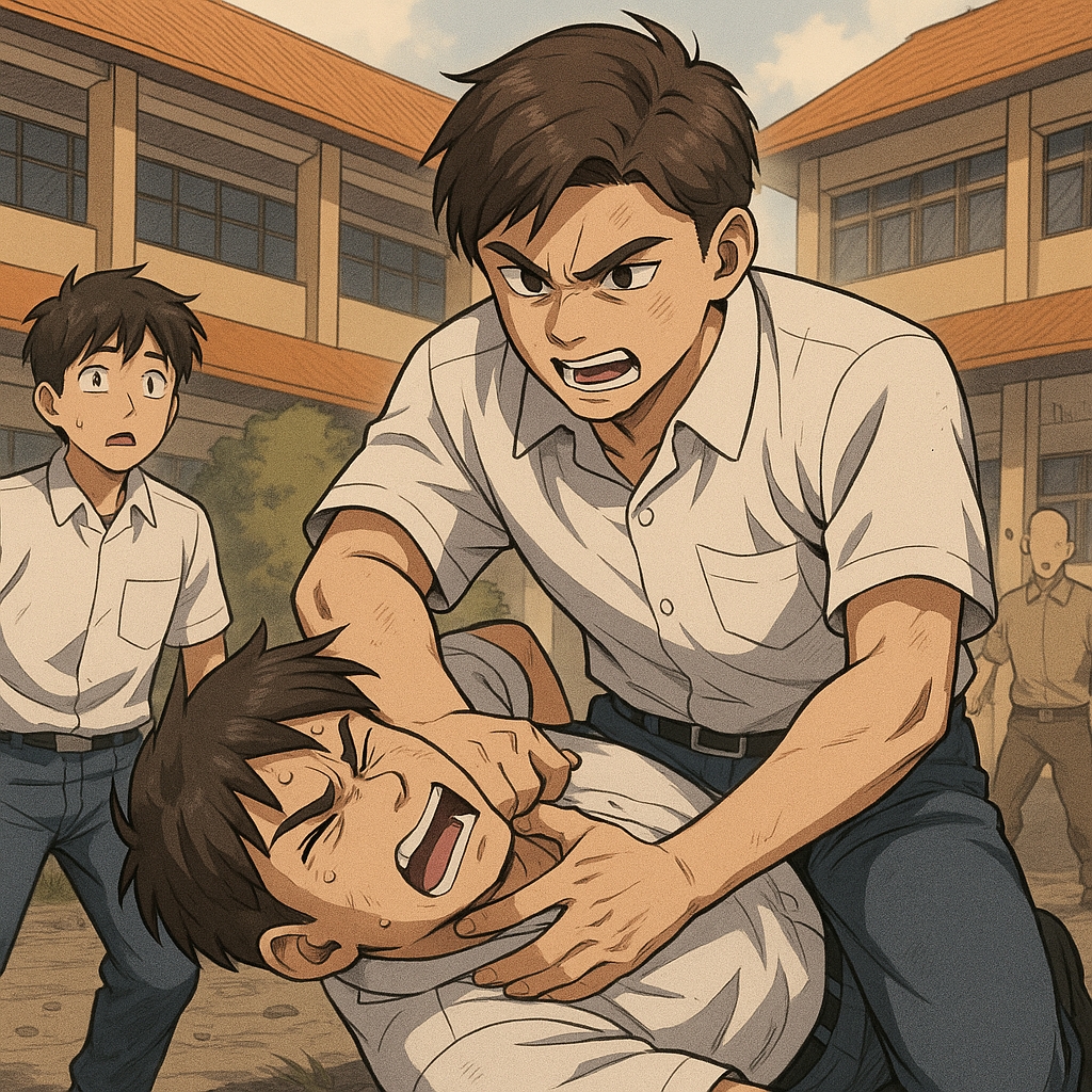 Aram sudah berlari menerobos parkiran. Dia menuju ke kantin. Larinya kencang sekali, aku nyaris tak bisa menyusulnya. Wajar sih, kuingat dulu Aram pernah cerita bahwa dalam latihan silat merpati, salah satu menunya adalah berlari. Jadi Aram sangat terlatih untuk ini. Tapi aku juga punya jurus lain, the power of kepepet. Paderi mengejar dengan cepat juga di belakangku, mengharuskan aku berlari secepat kilat menyusul Aram.
