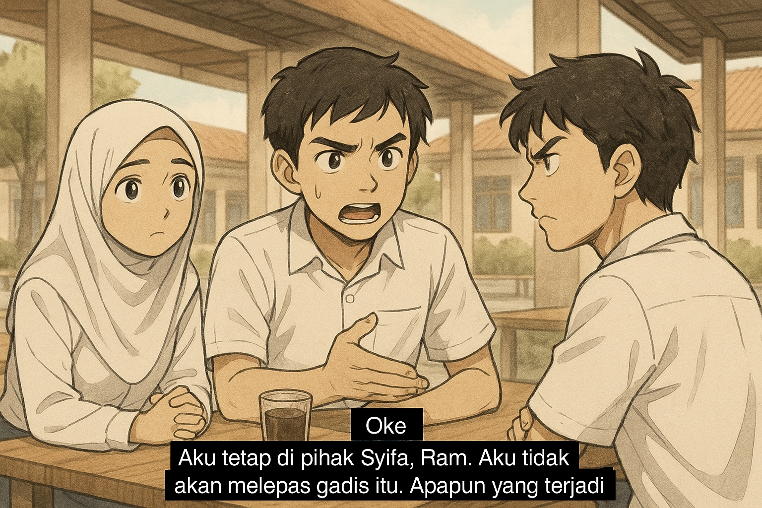 “Secara teknis,” serobot Wahid, “kau yang bisa kena hukuman, Pad. Kau yang memulai ini semua. Kau yang mengundang Azka. Bahkan kau tadi yang memukul Aram lebih dulu. Aram bisa beralasan dia membela diri. Bapak Wakasek Kurikulum yang terhormat akan menerima pembelaan itu.”