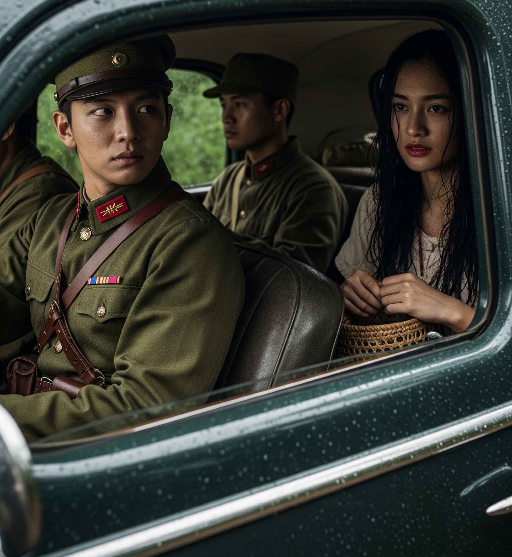 Roda kendaraan militer bergemuruh di jalan tanah. Renji duduk di kursi belakang, punggung tegak, mata tajam mengarah ke depan. Di sisi lain kaca jendela, pepohonan berderet cepat berlalu. Sunyi. Hanya suara mesin dan langkah sepatu tentara dari pos-pos kecil yang mereka lewati.