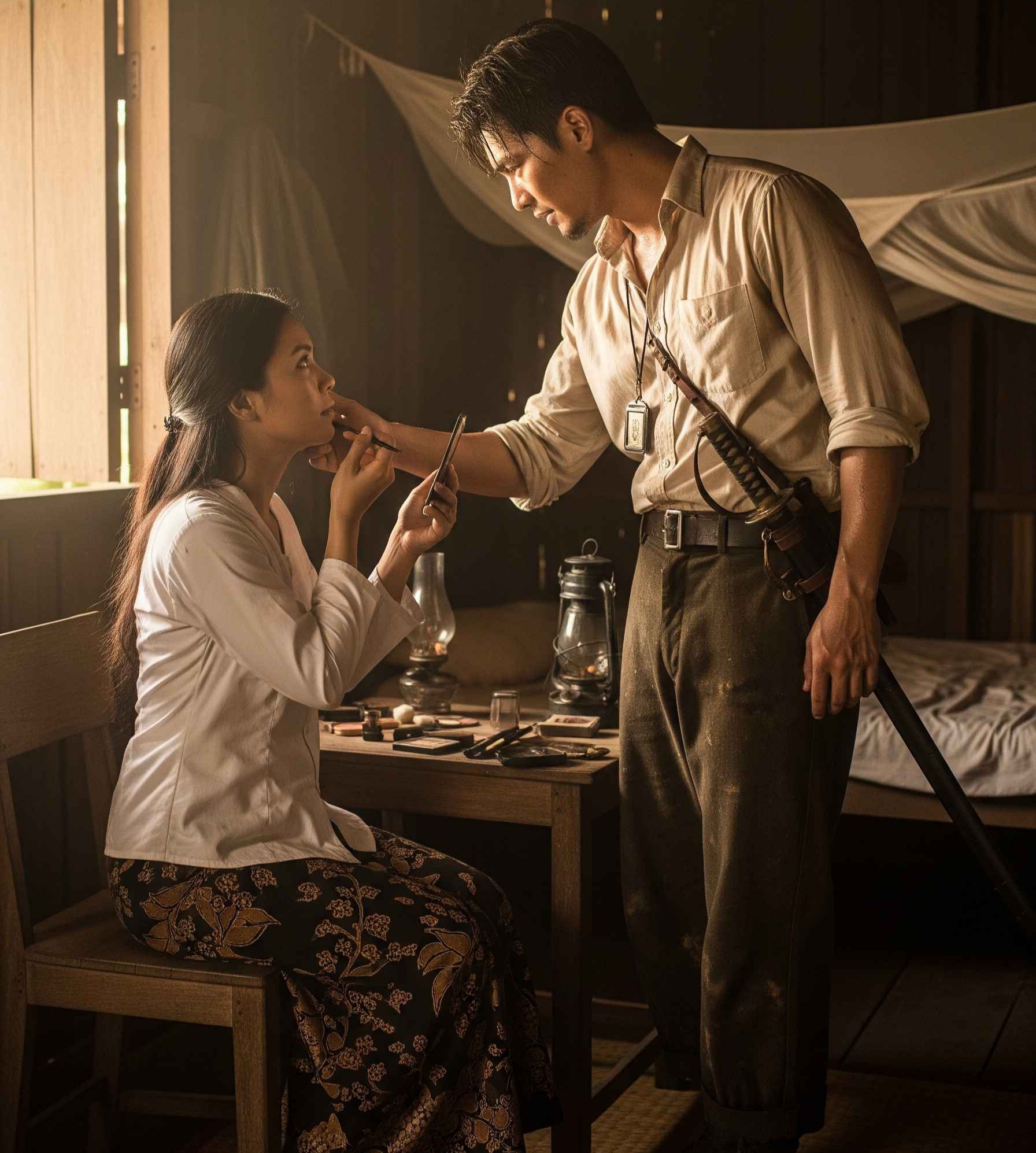 Mendadak, balai sunyi. Para tetua saling menatap, terkejut. Lukas menahan napas di balik pohon, para pemuda membeku. Bahkan perwira Jepang menatap tajam, alisnya berkerut. Apa’ Bide mendesah, langkahnya maju, tangan meraih lengan Bawan.
