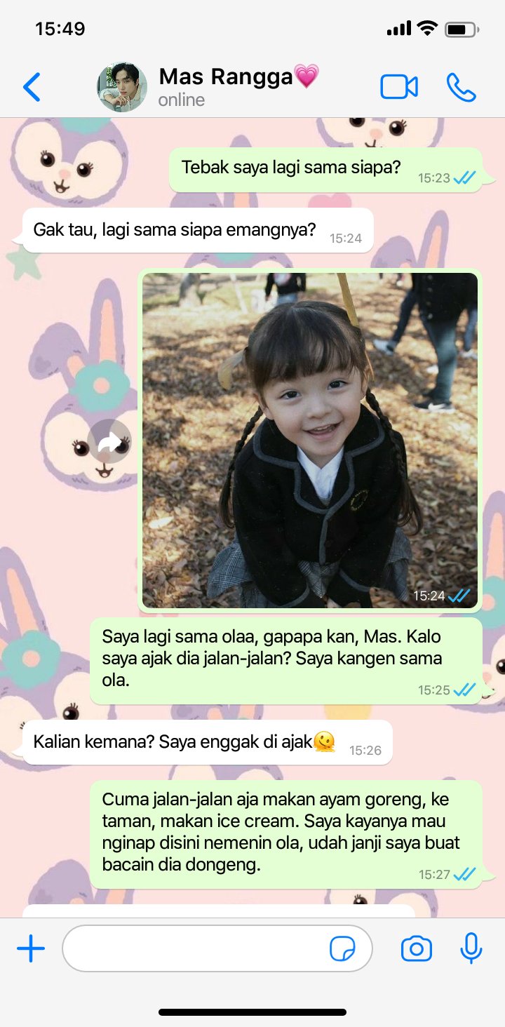 “Ayah juga kangen Rora.” kadang Rangga merasa bersalah jarang sekali mengunjungi Aurora disini, kesibukannya membuatnya harus jauh dari anaknya itu.