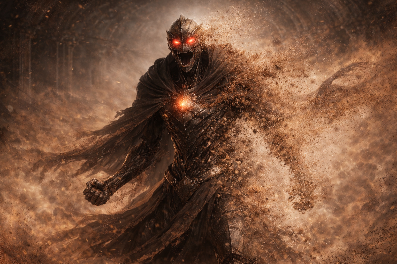 Di depan mereka, gumpalan pasir melambat, lalu menyatu. Butiran demi butiran mengikat diri, membentuk tubuh utuh. Jubah coklat menjuntai, menyelimuti wujud tinggi itu.