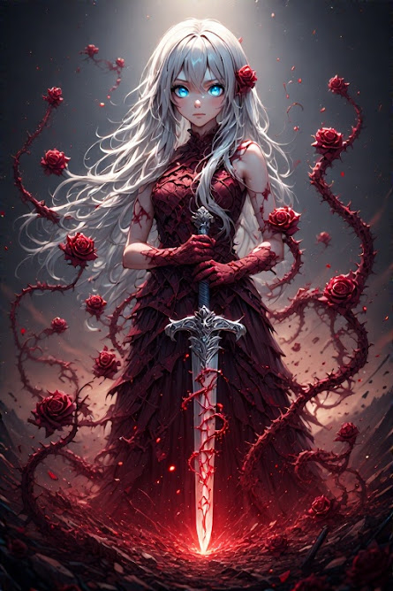 Gambar 2: Putri Mawar Darah Memanggil Familiar, Sulur Mawar Darah