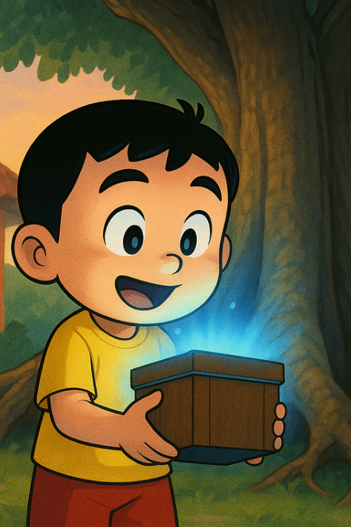 "Kalau ini harta karun, bisa-bisa aku jadi anak terkaya di kampung!" pikirnya sambil membuka tutup kotak dengan hati-hati.