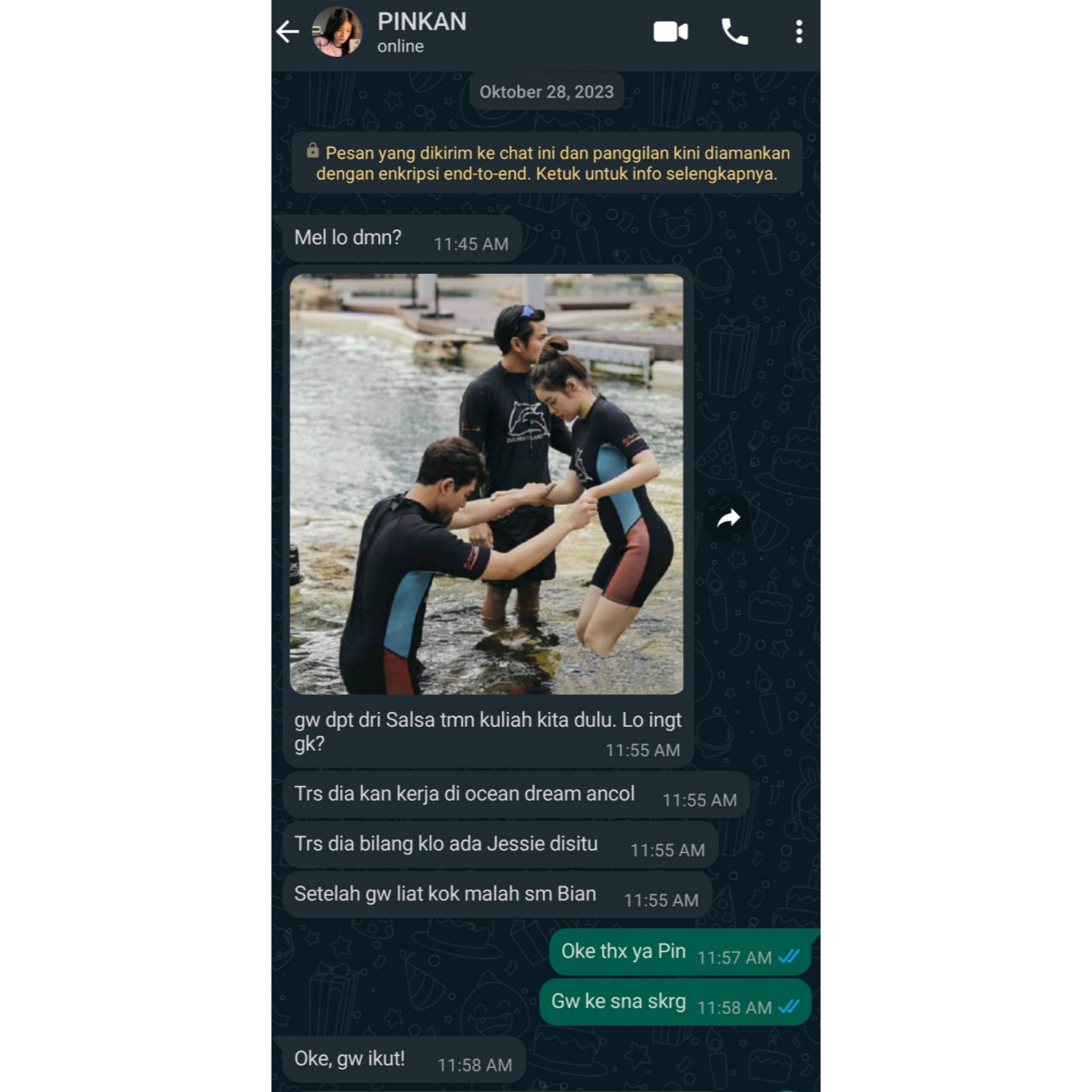 Jari-jemari lentiknya menari cepat di permukaan layar dan menampilkan sebuah chat WhatsApp dari Pinkan mengirim sebuah foto...