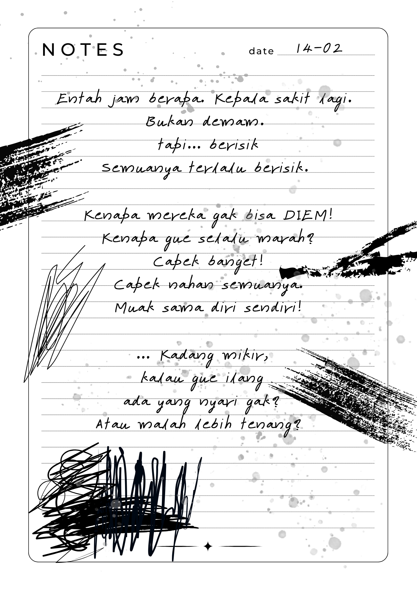 Halaman-halamannya penuh coretan, ditulis dengan tangan gemetar dan amarah yang tak pernah reda. Kalimat-kalimat pendek, acak, seperti: